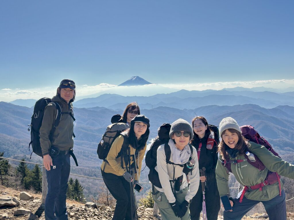 山好きの女性グループの皆様と秋の大菩薩嶺に登ってきました。天気は快晴。風はなく、気温は高くもなく低くもないという絶好の登山日和。お客様からいただいたオーダーは、「日帰りで、お友だち同士で楽しく、ゆったりと絶景を楽しめる山」。そこで浮かんだのが日本百名山の大菩薩嶺。首都圏からのアクセスもよく、富士山をはじめその周辺の山々(三つ峠、黒岳、天子山地など)、南アルプスの全景、南八ヶ岳、金峰山などの奥秩父の山、大菩薩峠まで行くと雲取山から大岳山、御前山などの奥多摩の山々を一望できます。また、大菩薩嶺から大菩薩峠へは、なだらかで美しい稜線歩きを楽しめます。まるで幕の内弁当のように、一度にいろいろな山の楽しさを味わえる山です。